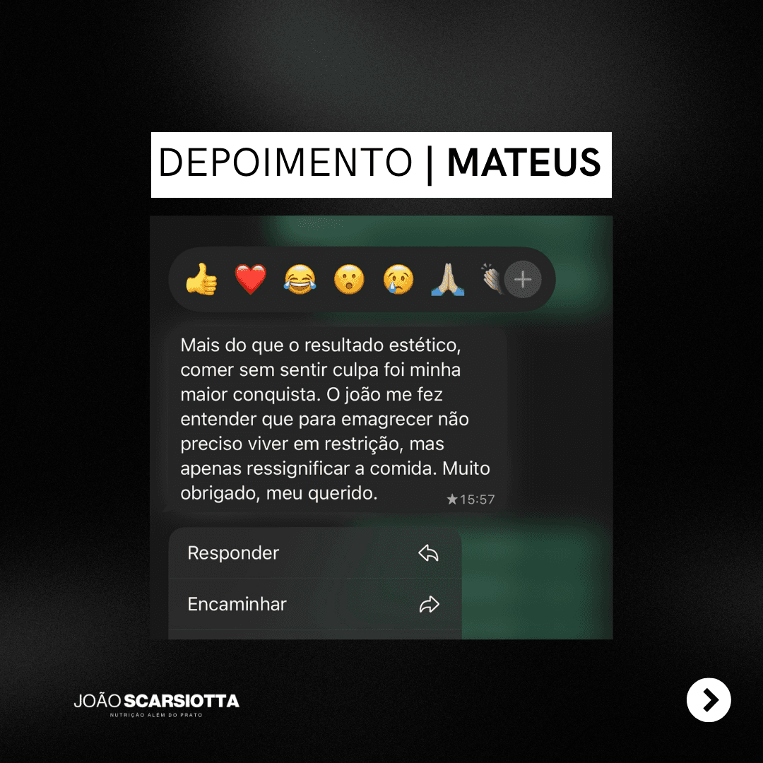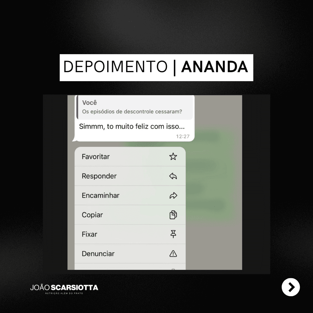 Hoje, ajudo pessoas a reconstruírem sua relação com a comida e conquistarem resultados sustentáveis, sem abrir mão da vida real.