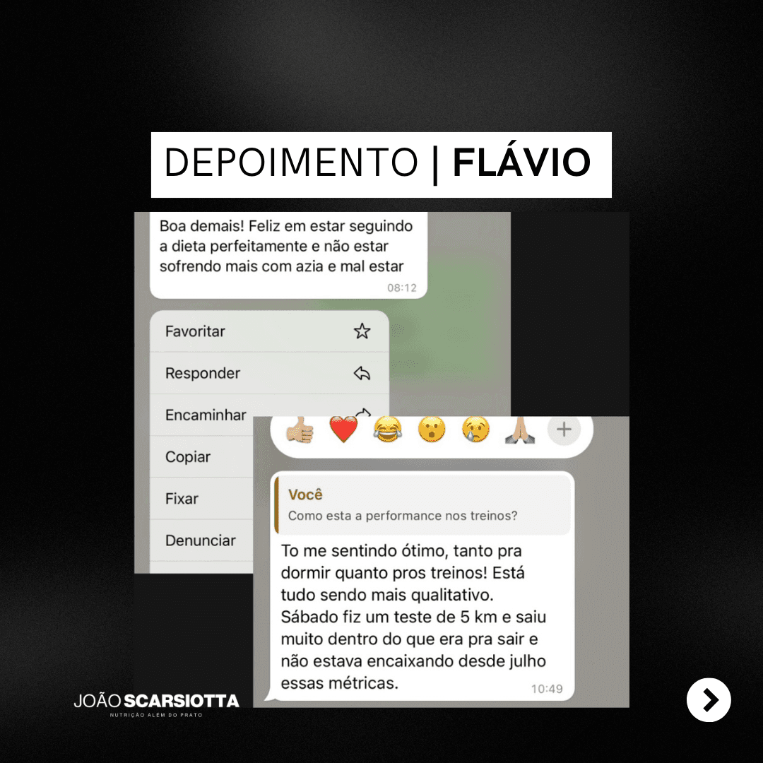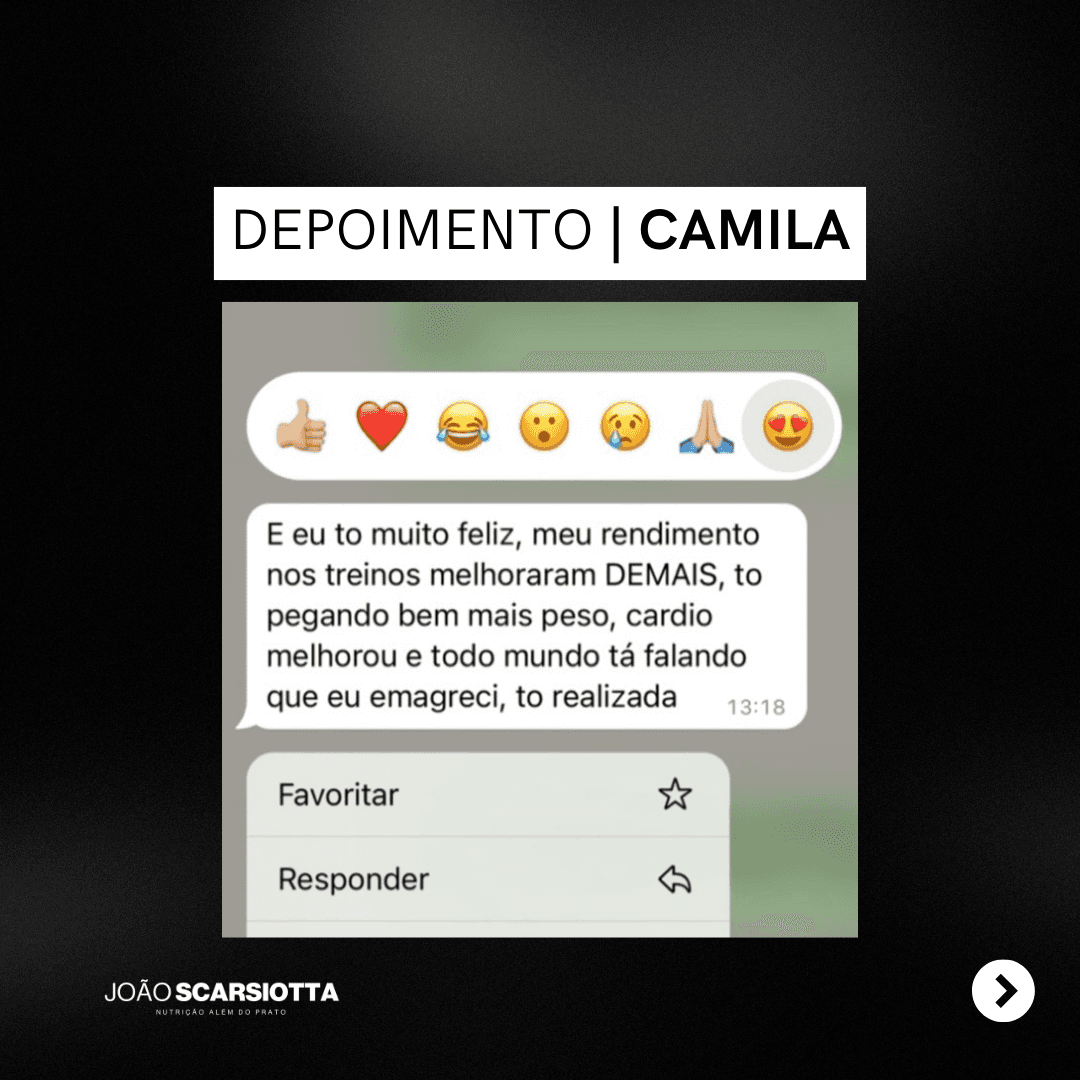 Você recebe um questionário periódico para eu acompanhar sua evolução e identificar o que está funcionando. Com esses dados, ajusto seu plano de forma precisa: quantidades, alimentos e estratégias sempre alinhados com seu momento.